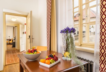 Ve svém pokoji se budete cítit opravdu jako doma, hotel je rozmístěn v pěti budovách okolo centrálního hotelového nádvoří. Nemusíte jej složitě hledat podle čísla pokoje, jeho polohu si okamžitě zapamatujete. Při návštěvě přátel v jiném pokoji budete příjemně překvapeni, jak unikátní, neopakovatelné a nezaměnitelné prostředí obýváte díky prostorové různorodosti, použití různých materiálů a barevnosti interiéru. Každý pokoj má specifický tvar i charakter, ty v historických objektech jsou vybaveny kovovými postelemi, stylovými skříněmi a stoly.